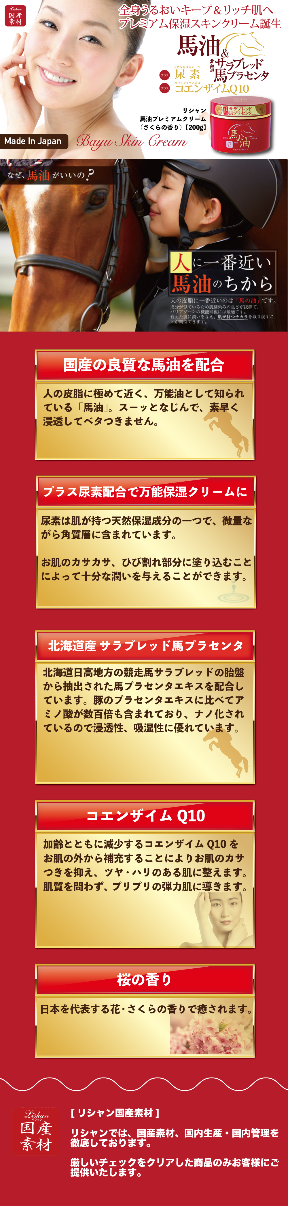 リシャン 馬油プレミアムクリーム(さくらの香り)200g