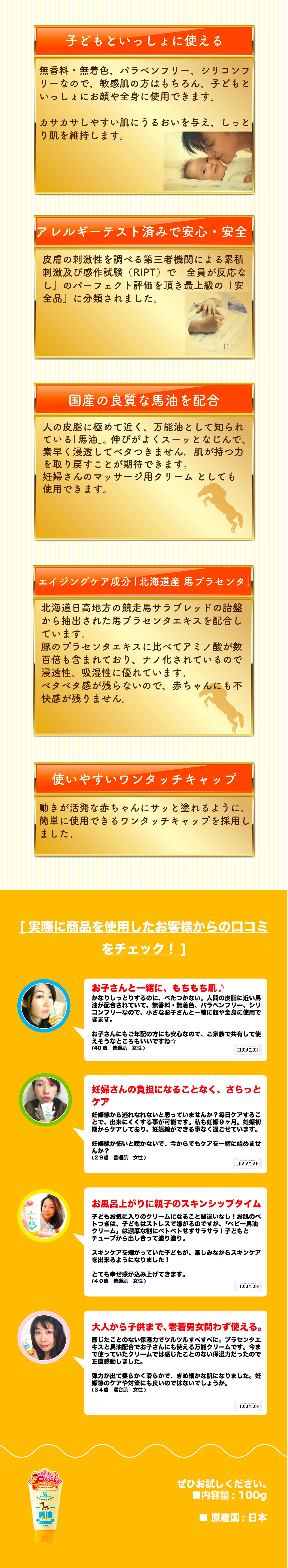 - ベタつかず無香料タイプの国産馬油配合保湿スキンクリーム