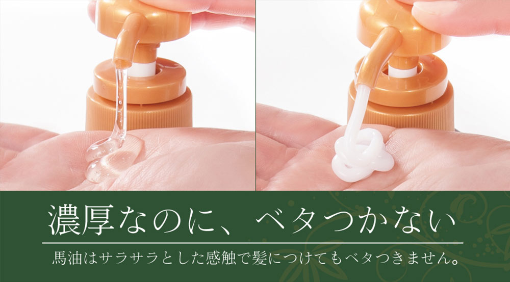 - 馬油はサラサラとした感触で髪につけてもベタつきません。