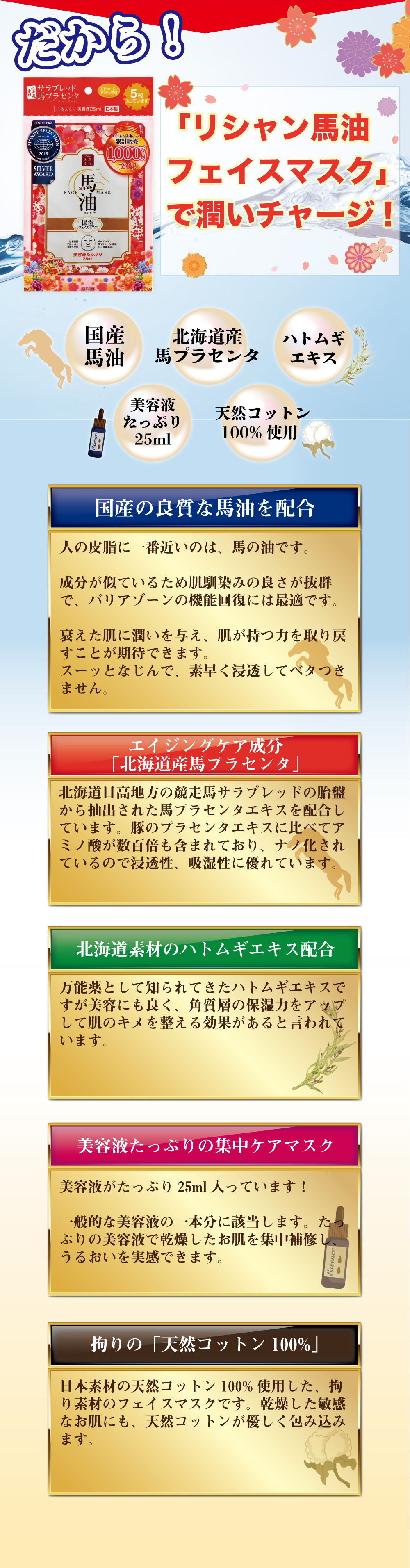 リシャン 馬油フェイスマスク(さくらの香り)5枚入り