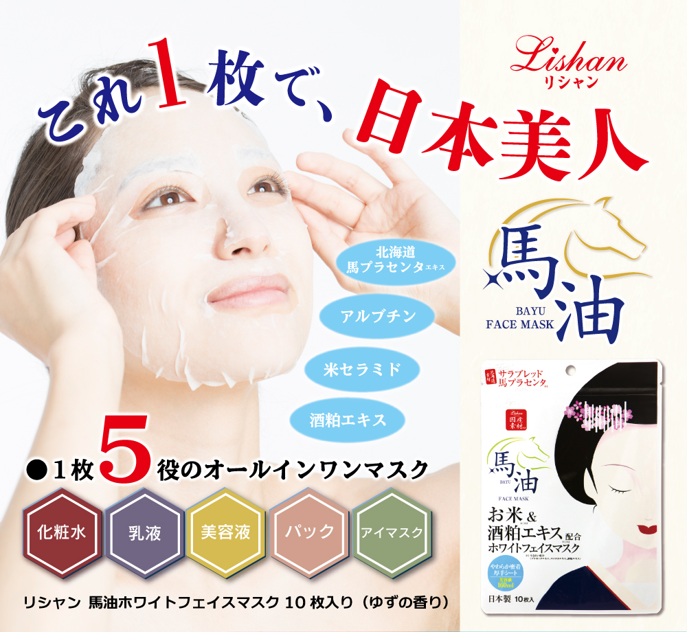リシャン 馬油ホワイトフェイスマスク(柚子の香り)10枚入り