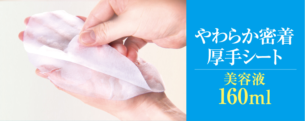 - 肌に吸いつくような密着するシートに美容液160mlをたっぷり入れているので、うるおいを実感できます。