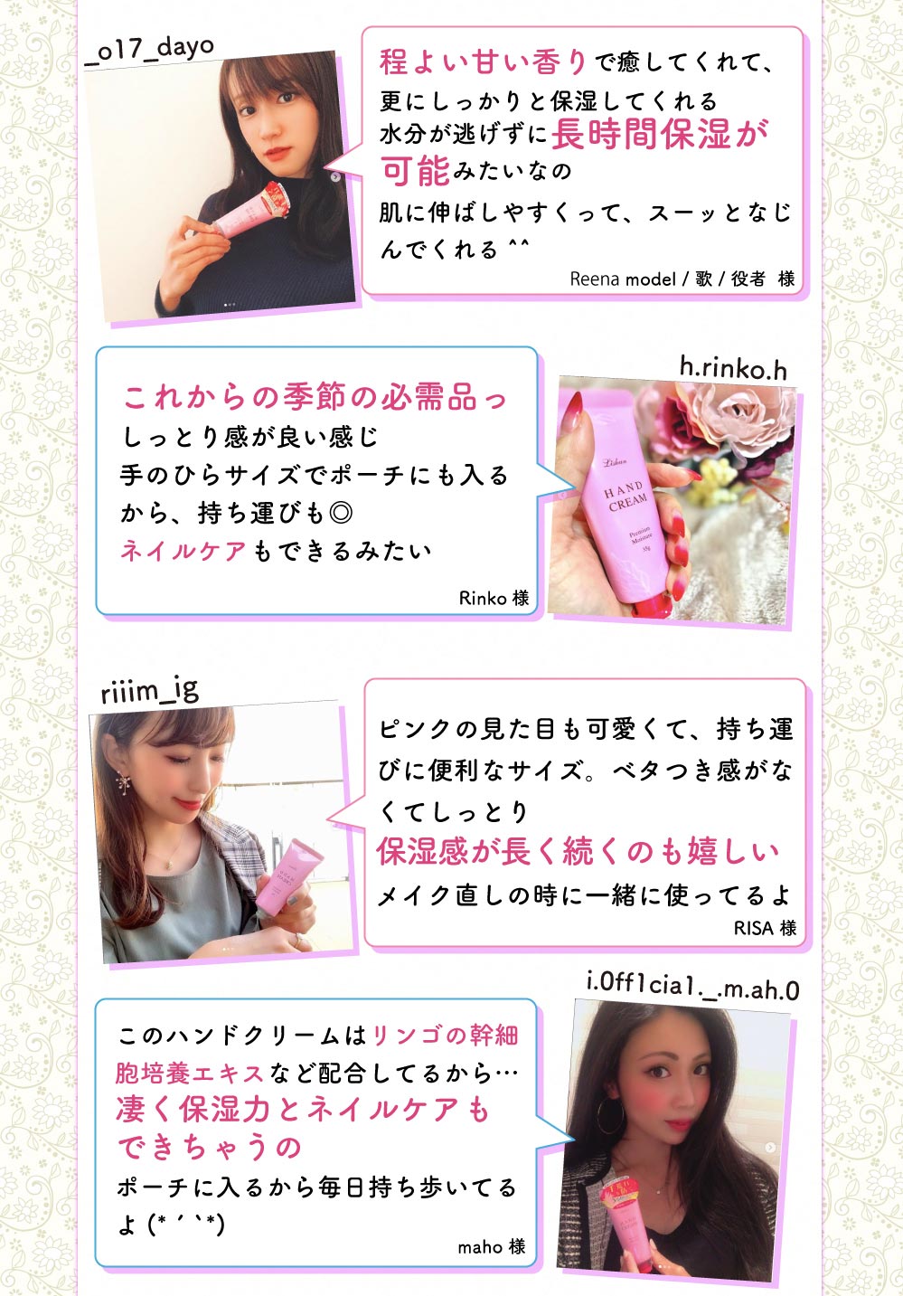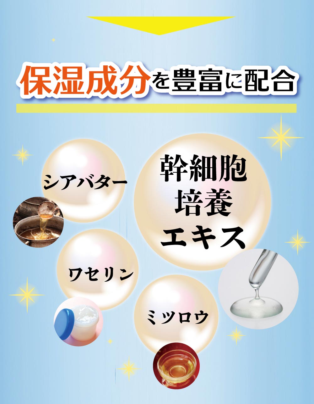 - リンゴの植物幹細胞エキスを培養したエキスが手荒れを防ぎ、うるおいをキープします。