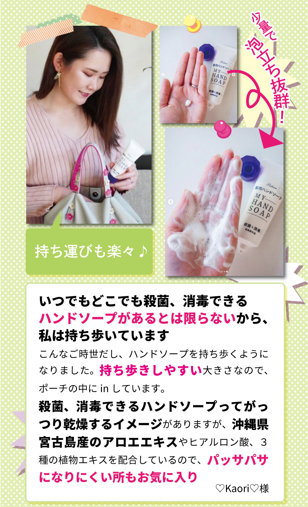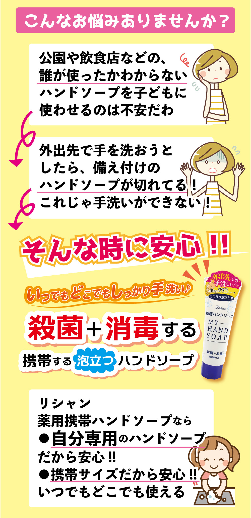 殺菌+消毒+洗浄する携帯用ハンドソープ